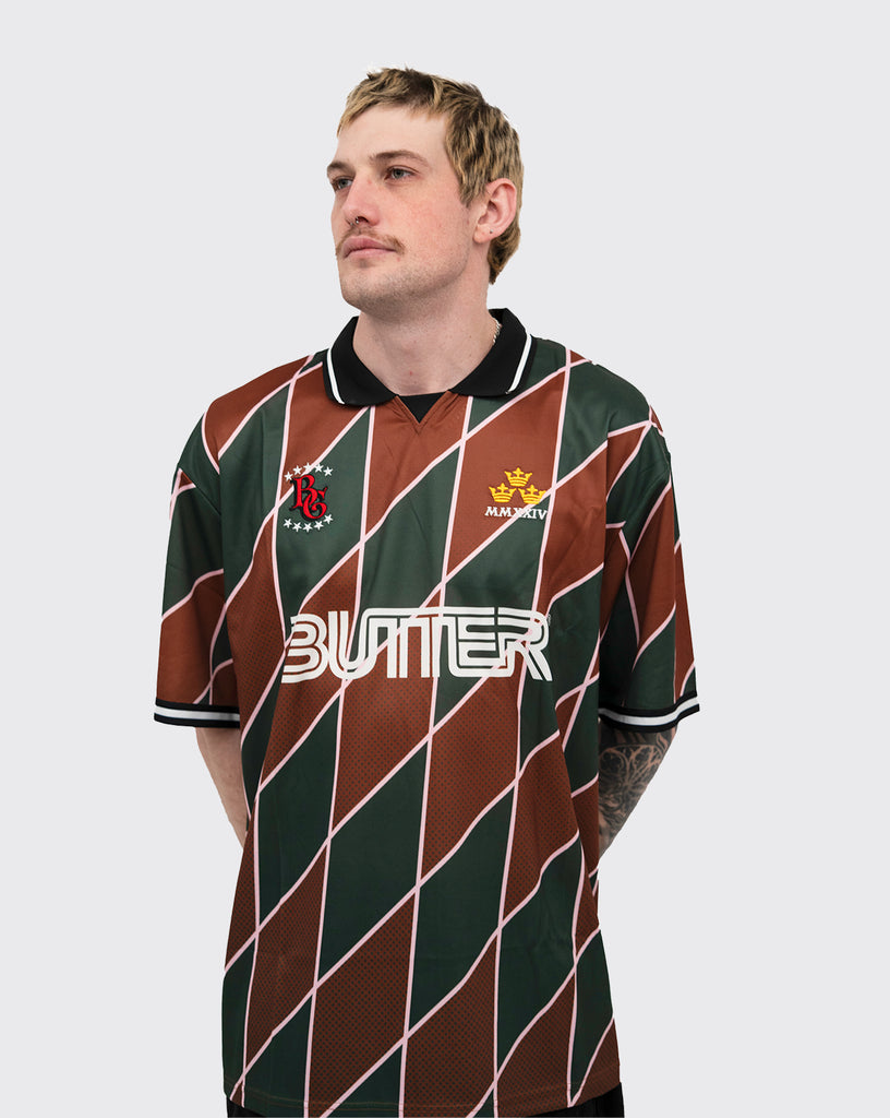 Suit up for summer with the Butter Goods football jersey crafted from breathable cotton and finished with an all-over geometric print and embroidered details that complete the design.