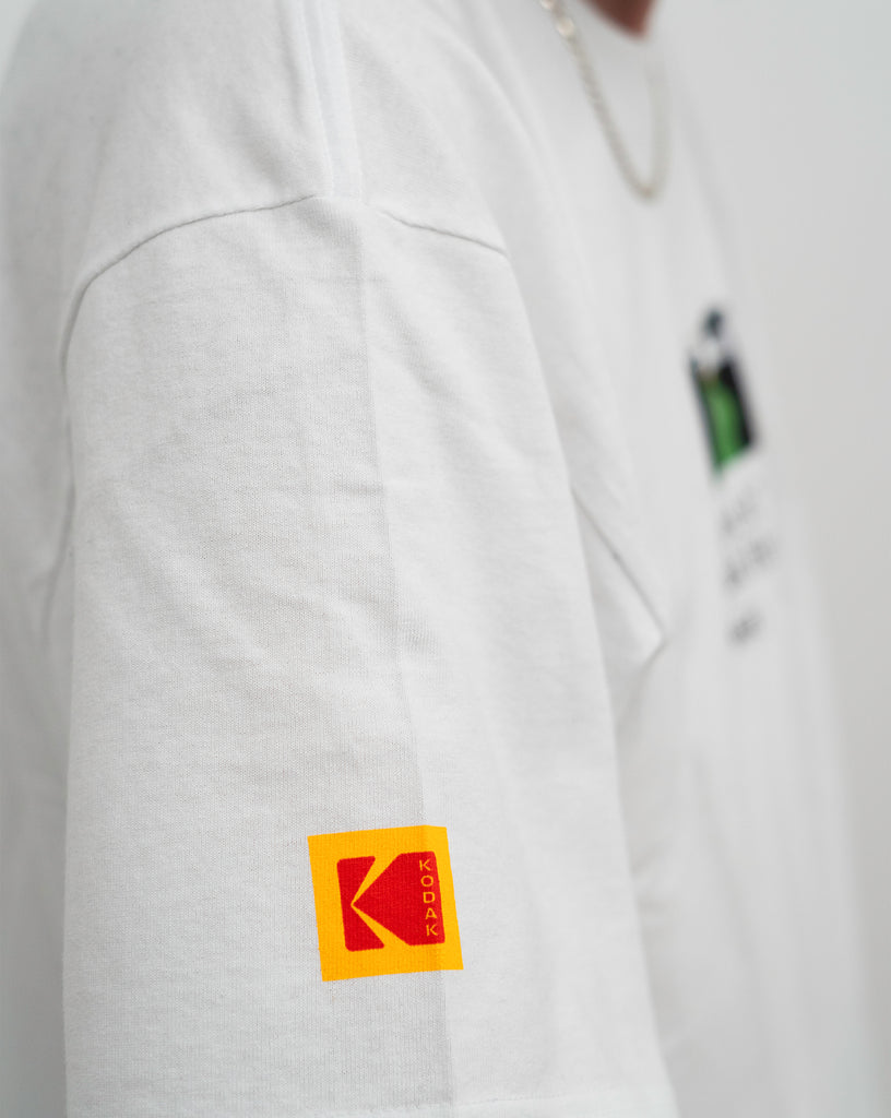 This sick collab between Huf and Kodak features a Kodak film camera graphic on the front of the Tee and its logo on the sleeve.