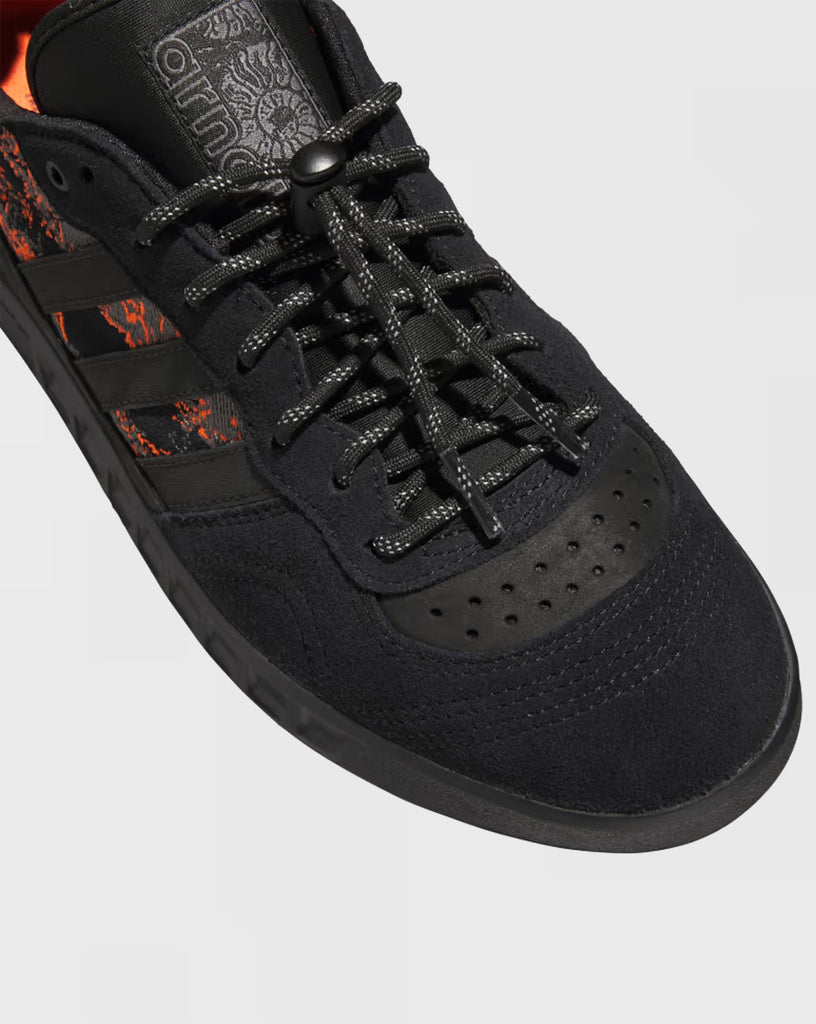 The Handball Top x Mike Arnold Shoes are designed in collaboration with the adidas skateboarding pro, Mike Arnold. This second iteration of the Handball Top takes inspiration from the visual cues of speed and friction.