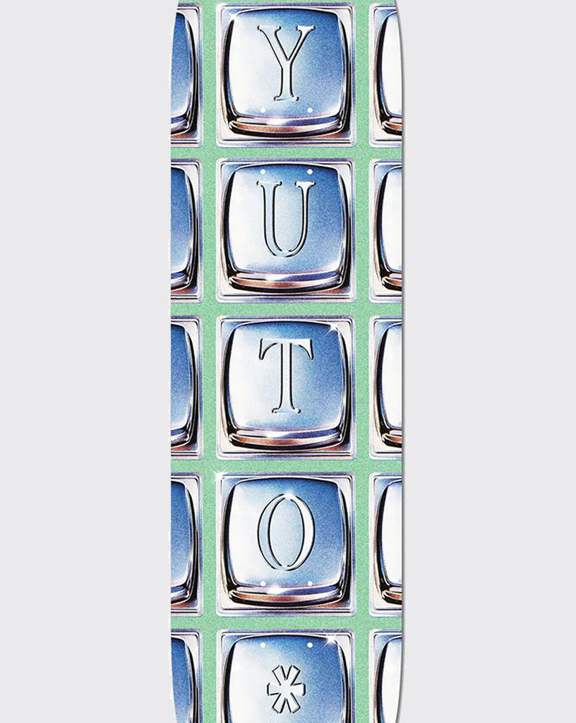 The bottom of the board displays an embossed graphic of old-school cell phone buttons spelling out YUTO*