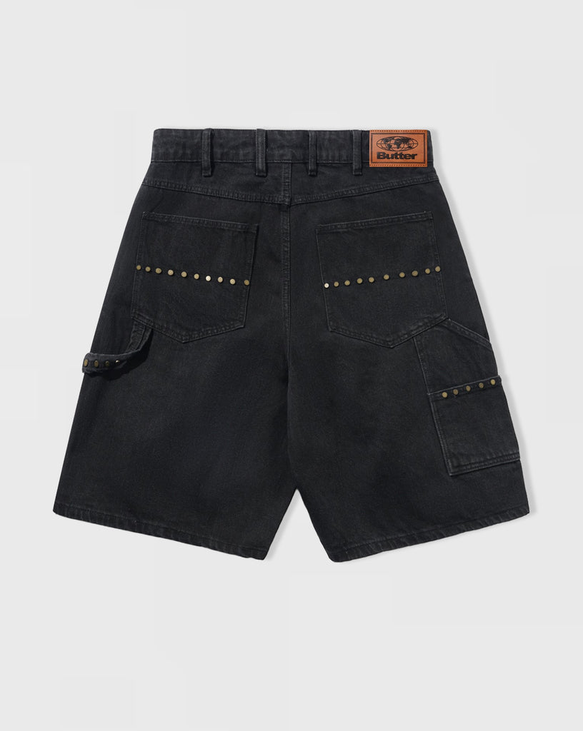 Rivet Denim Shorts - Washed Black