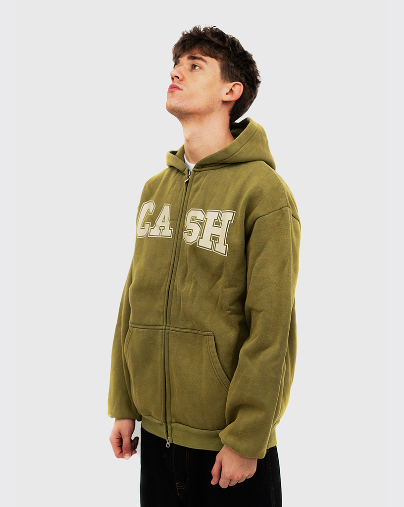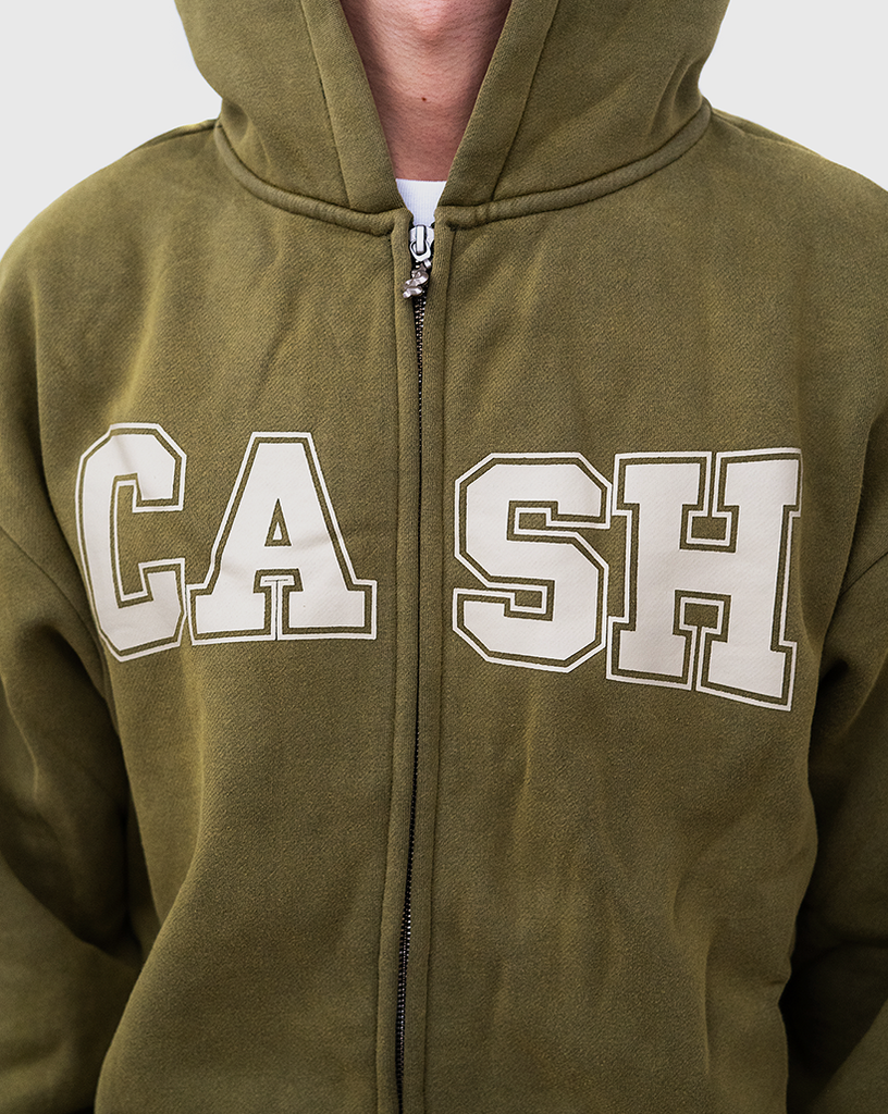 Cash Only Campus Zip Up Hoodie - Washed Olive