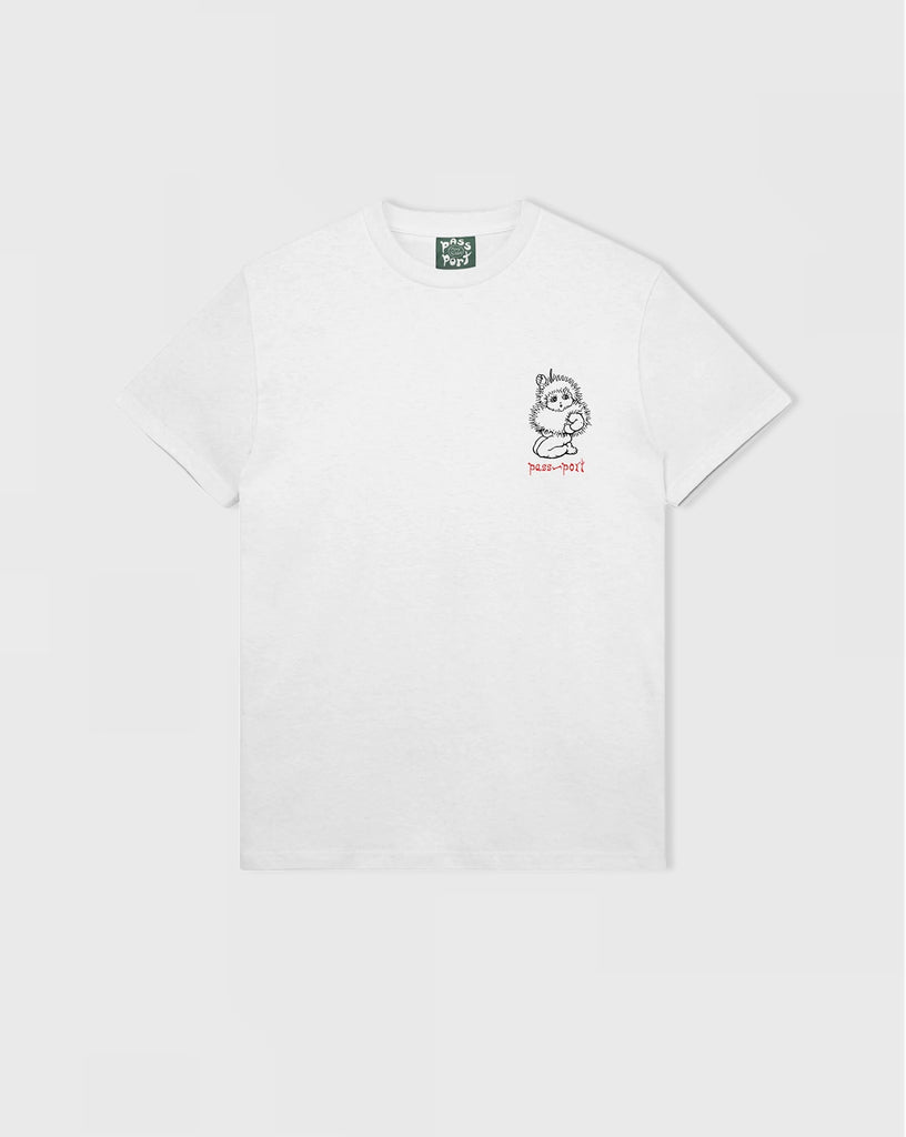 The Webbed Bed tee in White is made from 100% cotton and features a screen printed graphic on the front and back, finishing in the signature Pass-Port fit.